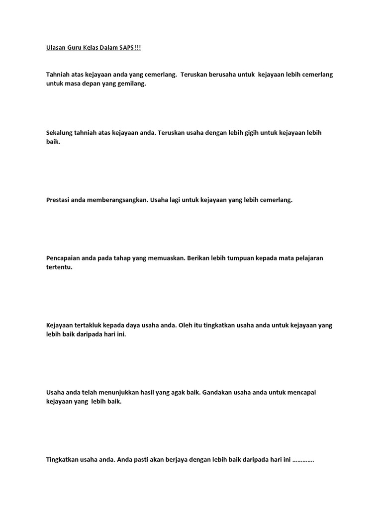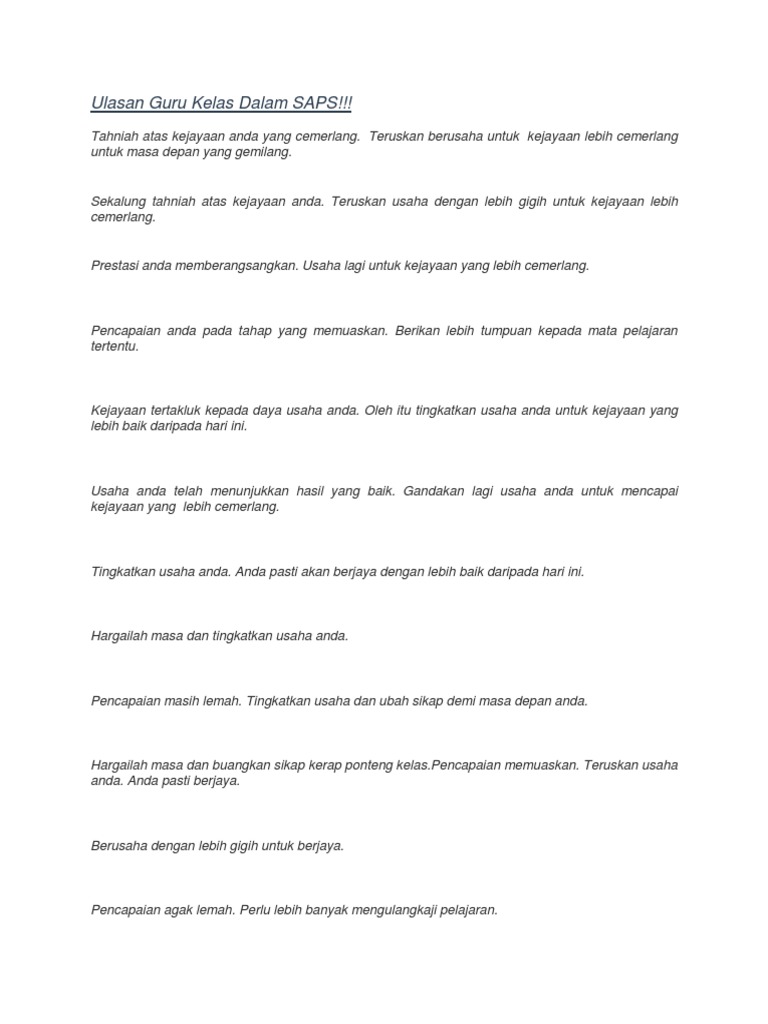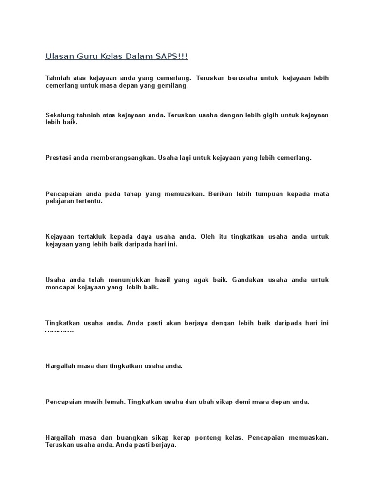 Contoh Ulasan Guru Kelas Dalam Peperiksaan Ronsdya