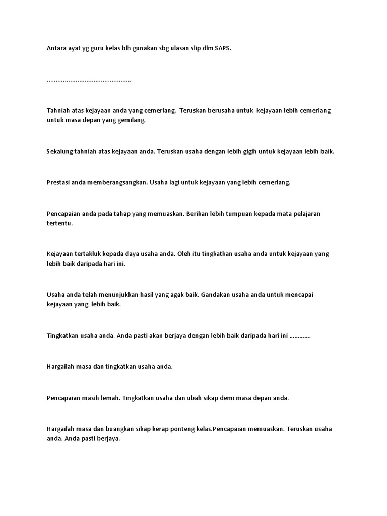 Ulasan Guru Kelas Dalam Slip Peperiksaan Ocpertz